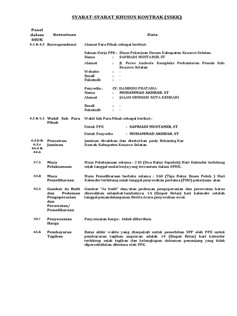 SYARAT-SYARAT KHUSUS KONTRAK (SSKK)
