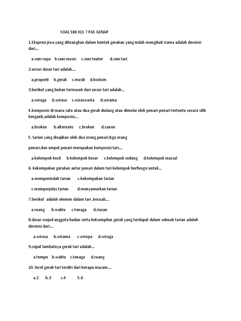 a.seni rupa b.seni music c.seni teater d.seni tari