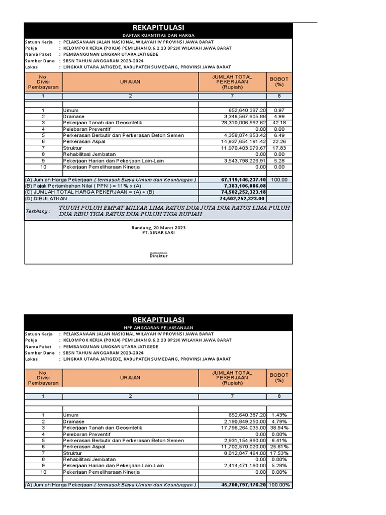 (A) Jumlah Harga Pekerjaan ( termasuk Biaya Umum dan Keuntungan ) 45,700,797,176.20 100.00%