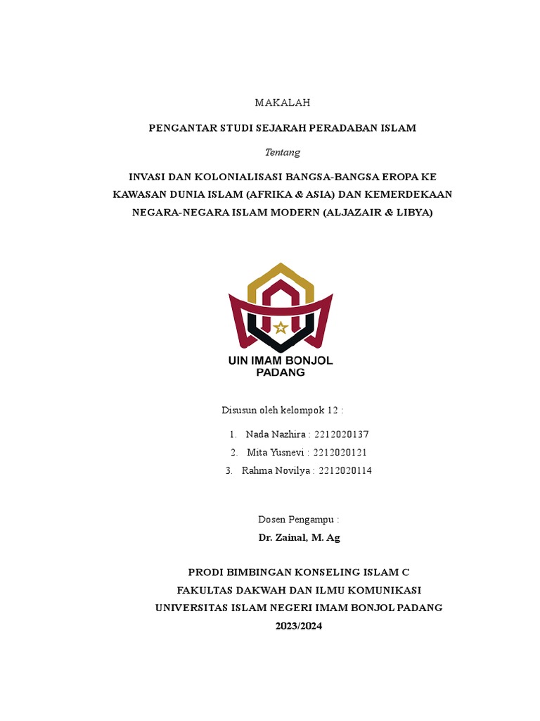1. Invasi dan Kolonialisasi Bangsa-bangsa Eropa ke Kawasan Dunia Islam