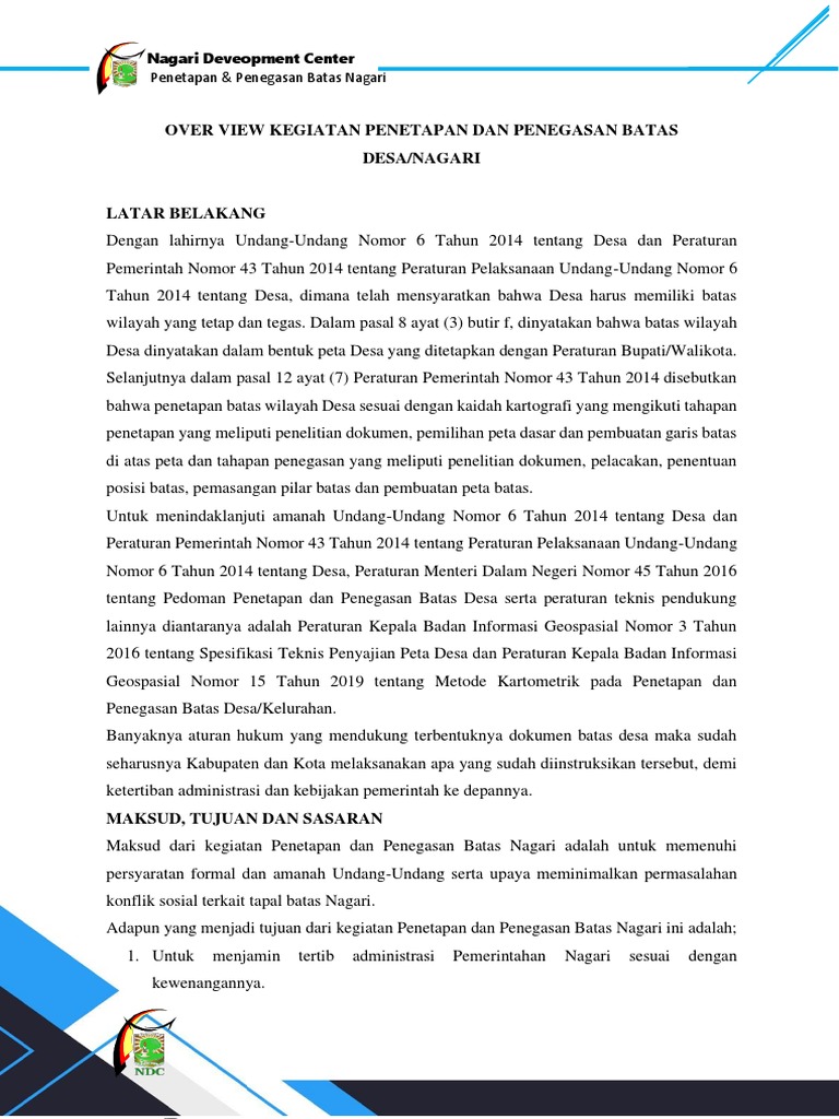 1. Untuk terwujudnya Batas Nagari yang Definitif sesuai dengan aturan dan ketentuan