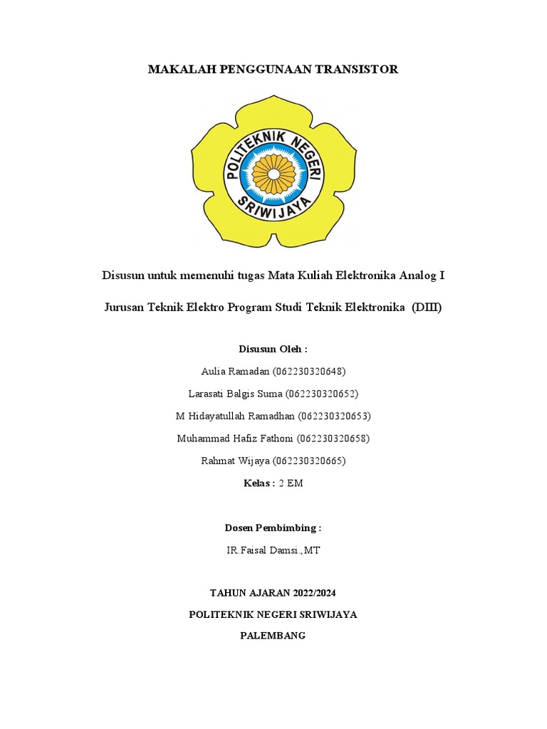 dosen mata kuliah elektronika analog yang telahmemberikan tugas terhadap kami juga ingin