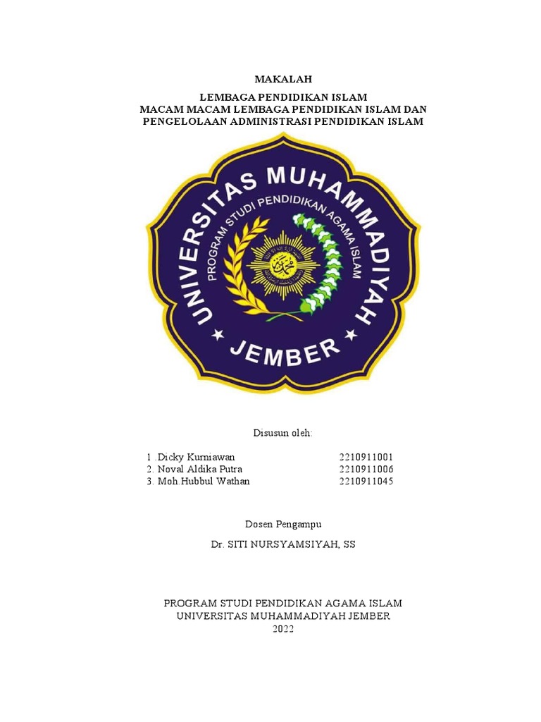 “Macam-macam Lembaga Pendidikan Islam dan Administrasi Pendidikan Islam”.