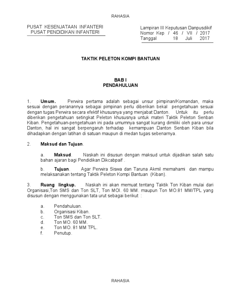 melaksanakan tentang Taktik Peleton Kompi Bantuan (Kiban).