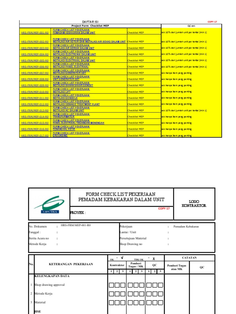 Hrs FRM Mep (Checkilst Pekerjaan Listrik)
