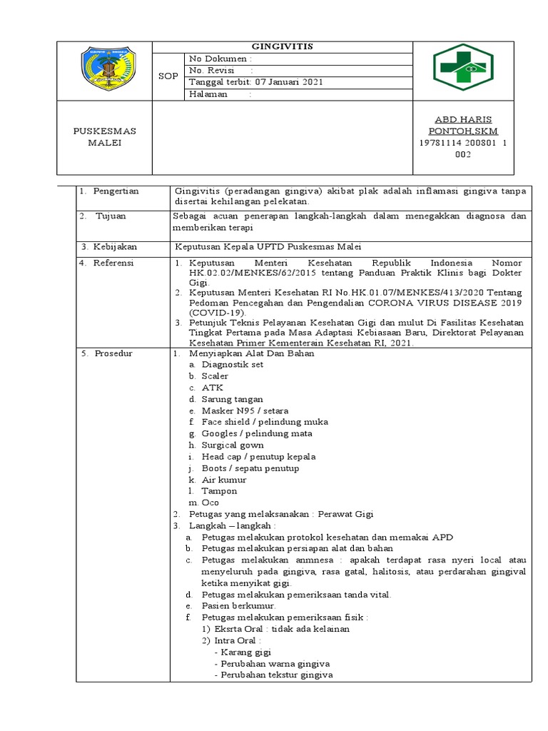 2. Petugas yang melaksanakan : Perawat Gigi