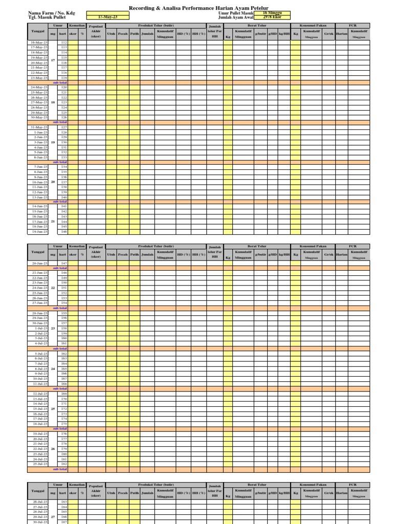 Tanggal Akhir Kumulatif telur Per Kumulatif Kumulatif Kumulatif