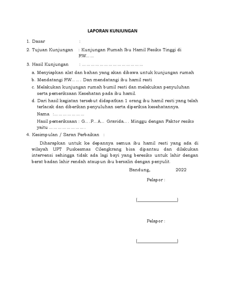 2. Tujuan Kunjungan : Kunjungan Rumah Ibu Hamil Resiko Tinggi di