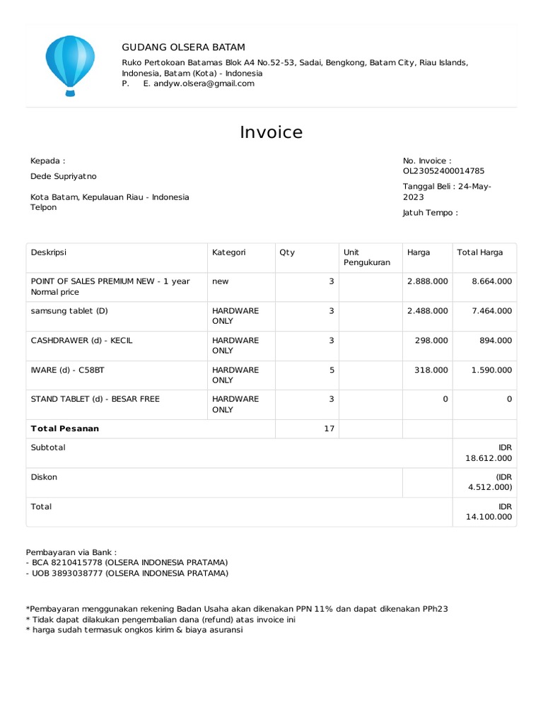 - BCA 8210415778 (OLSERA INDONESIA PRATAMA)