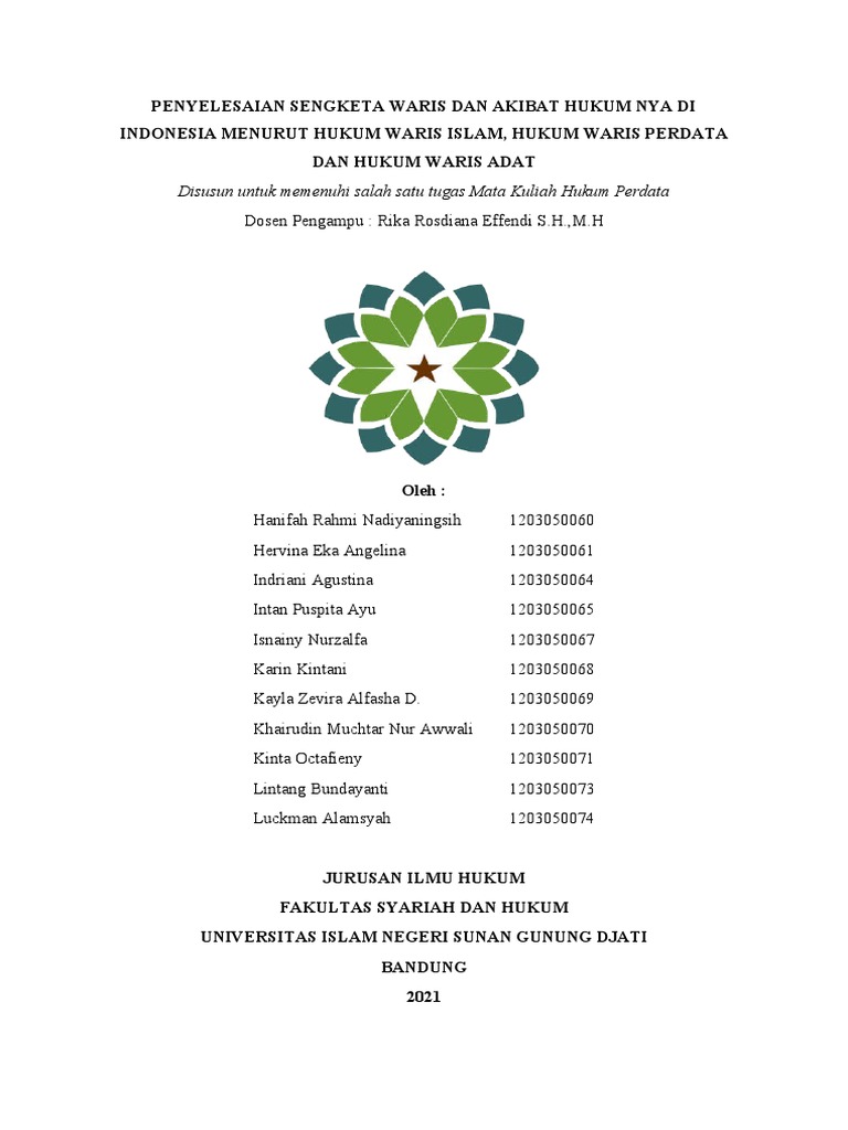 C. Penyelesaian Sengketa Warisan dan Akibat Hukummnya Menurut Hukum Perdata......8