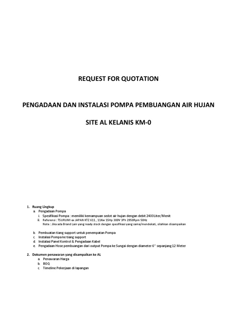 PENGADAAN DAN INSTALASI POMPA PEMBUANGAN AIR HUJAN