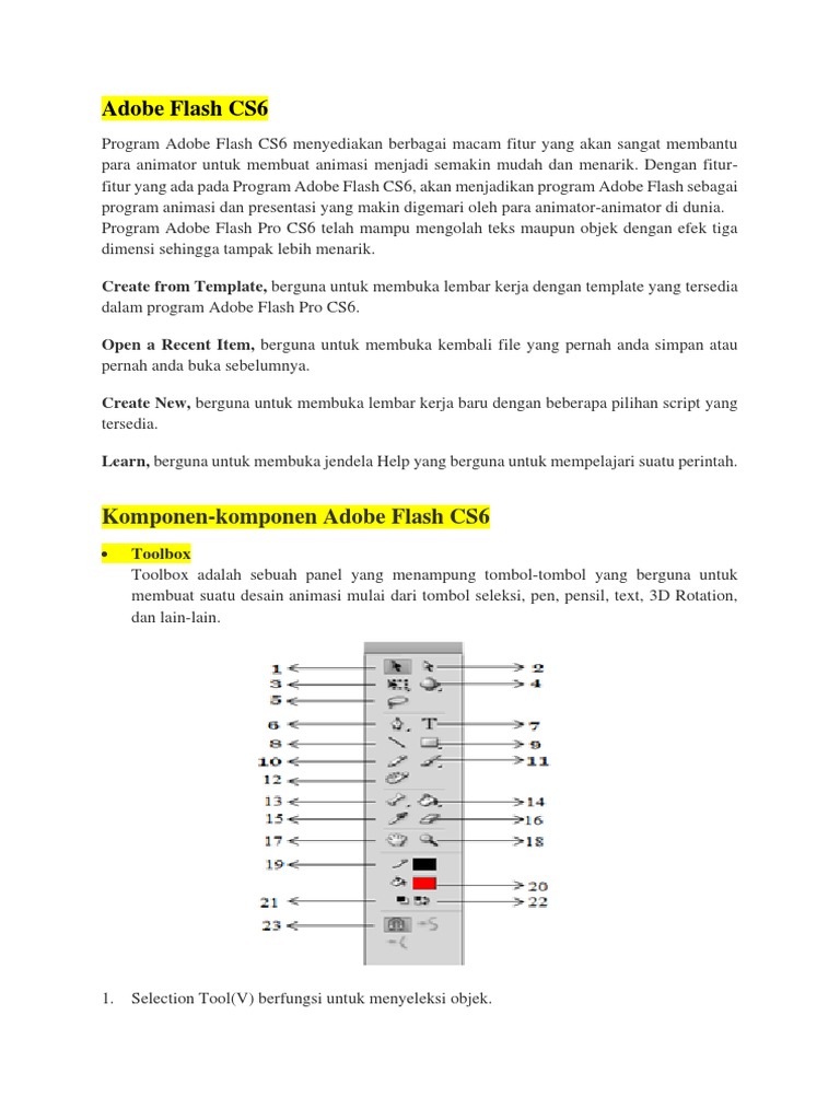 Program Adobe Flash CS6 menyediakan berbagai macam fitur yang akan sangat membantu