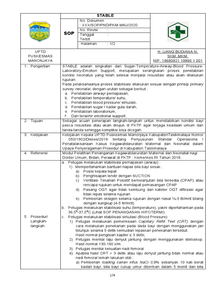 1. Pengertian STABLE adalah singkatan dari Sugar-Temperature-Airway-Blood Pressure-