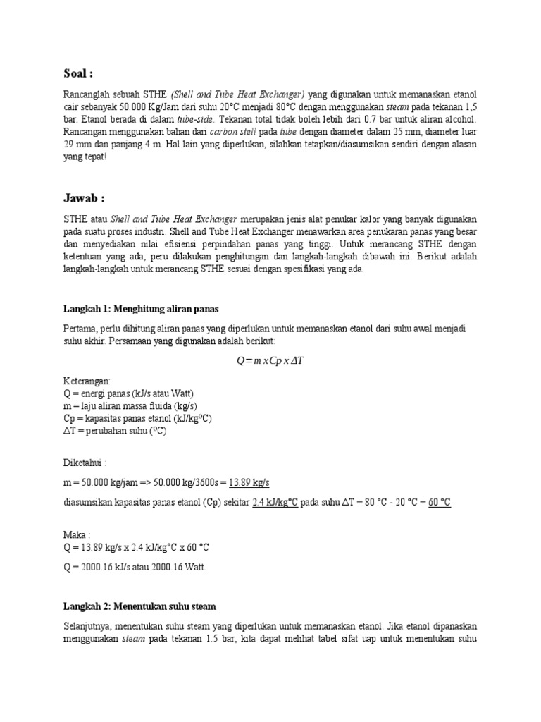 Rancanglah sebuah STHE (Shell and Tube Heat Exchanger) yang digunakan untuk memanaskan etanol