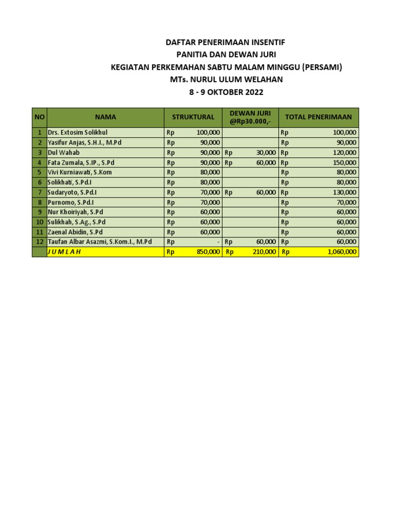 8 Purnomo, S.Pd.I Rp 70,000 Rp 70,000