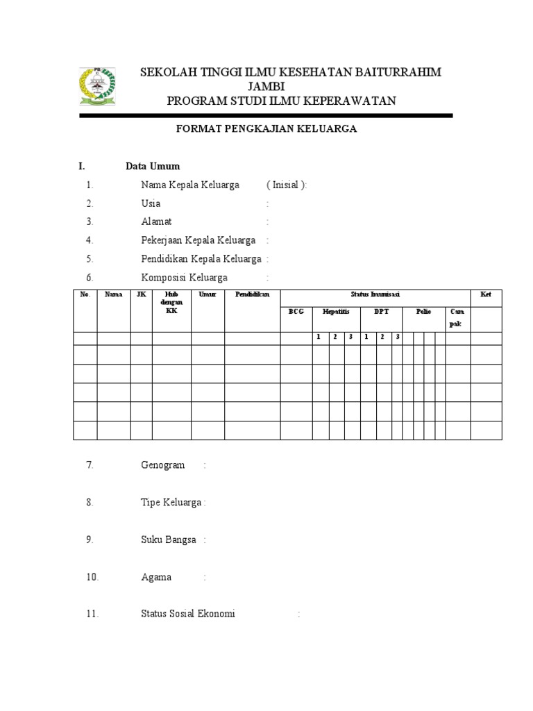 No. Nama JK Hub Umur Pendidikan Status Imunisasi Ket