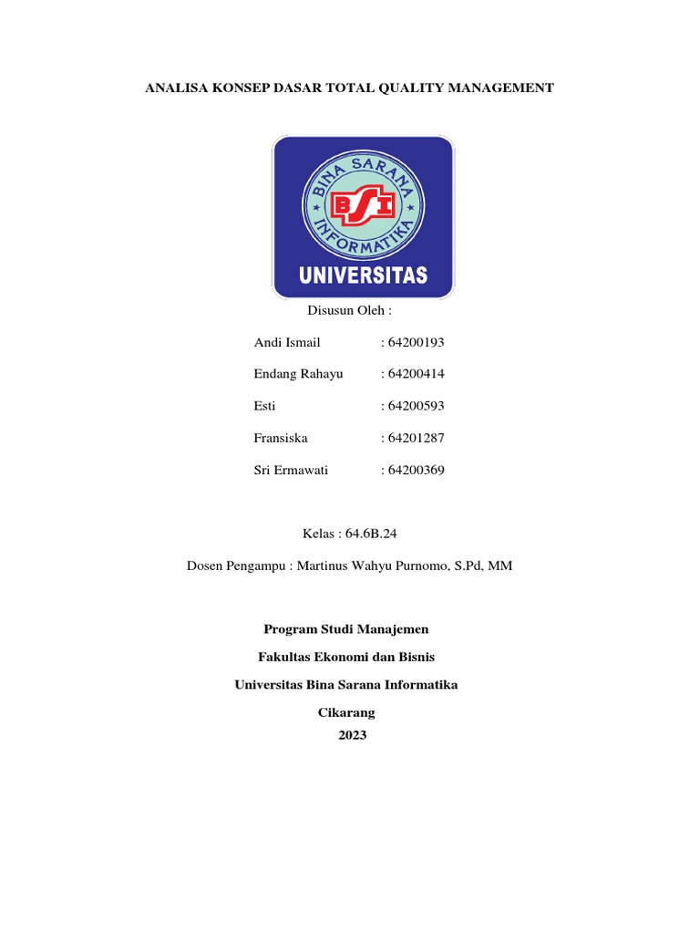 ANALISA KONSEP DASAR TOTAL QUALITY MANAGEMENT