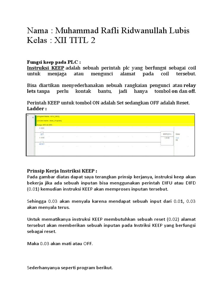 Instruksi KEEP adalah sebuah perintah plc yang berfungsi sebagai coil
