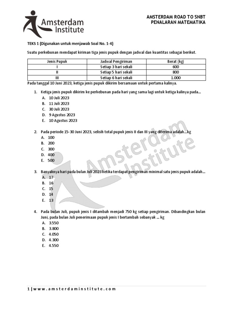 1. Ketiga jenis pupuk dikirim ke perkebunan pada hari yang sama lagi untuk ketiga kalinya pada…