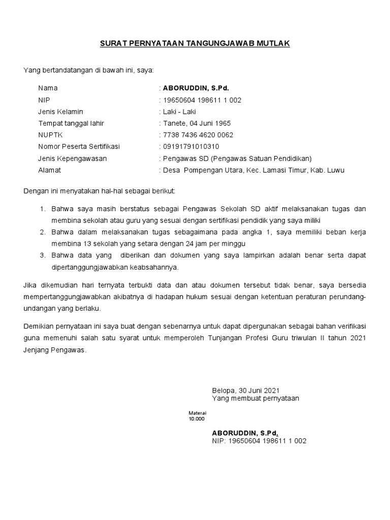 1. Bahwa saya masih berstatus sebagai Pengawas Sekolah SD aktif melaksanakan tugas dan