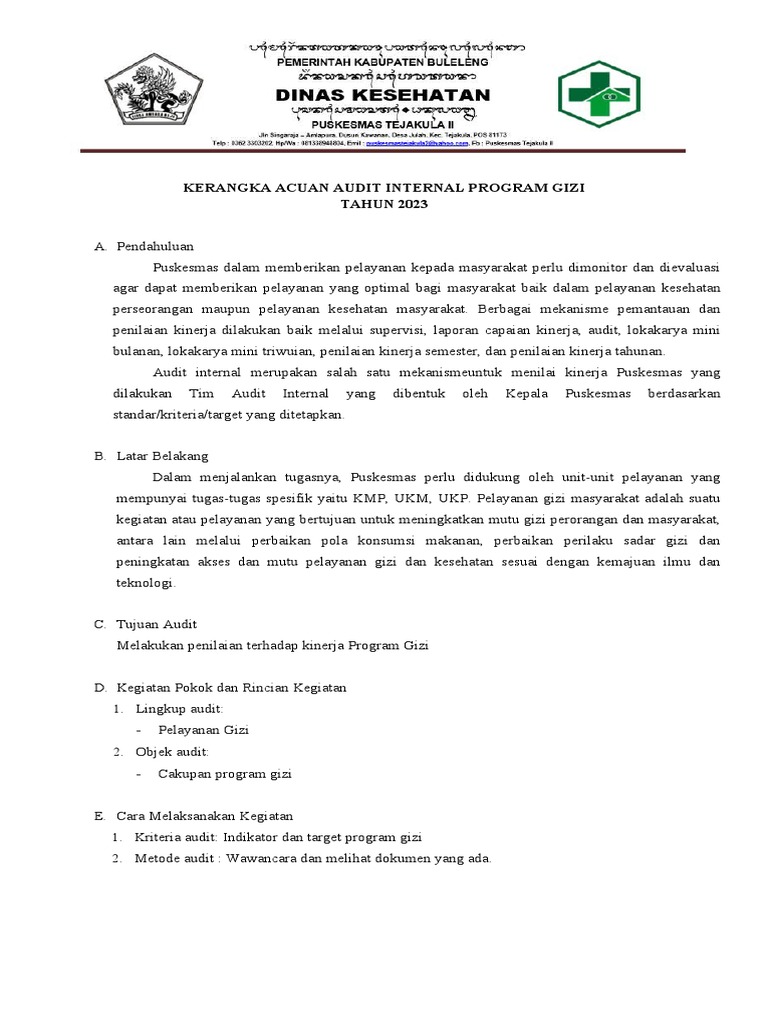 KERANGKA ACUAN AUDIT INTERNAL PROGRAM GIZI