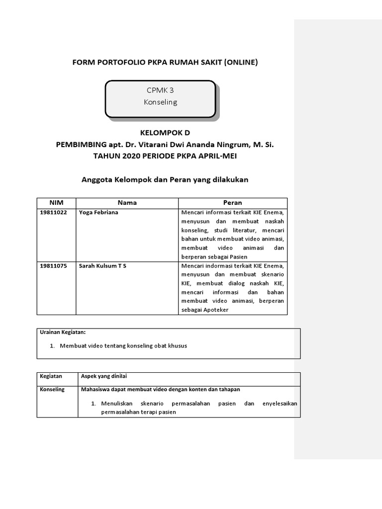 FORM PORTOFOLIO PKPA RUMAH SAKIT (ONLINE)
