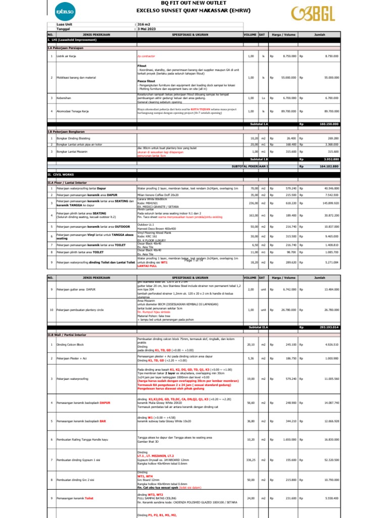 terkait proyek (berlaku pada seluruh tahapan fitout)