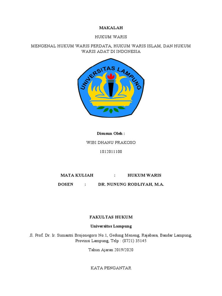 dalam Hukum Waris. Makalah ini dibuat untuk memenuhi tugas Ujian Akhir Semester