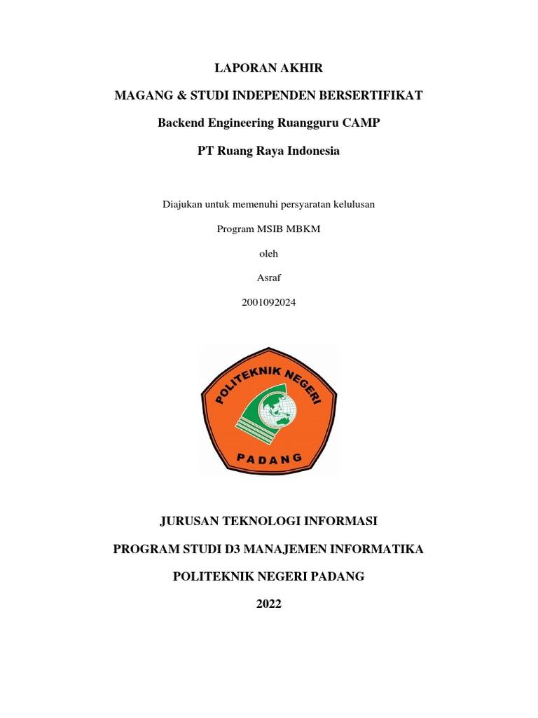 “Backend Engineering Ruangguru CAMP” yang diselenggarakan PT. Ruang Raya Indonesia.