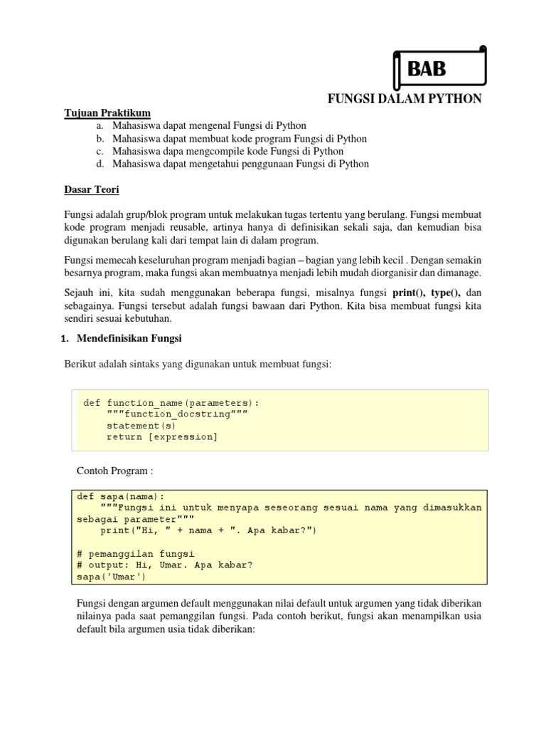 d. Mahasiswa dapat mengetahui penggunaan Fungsi di Python