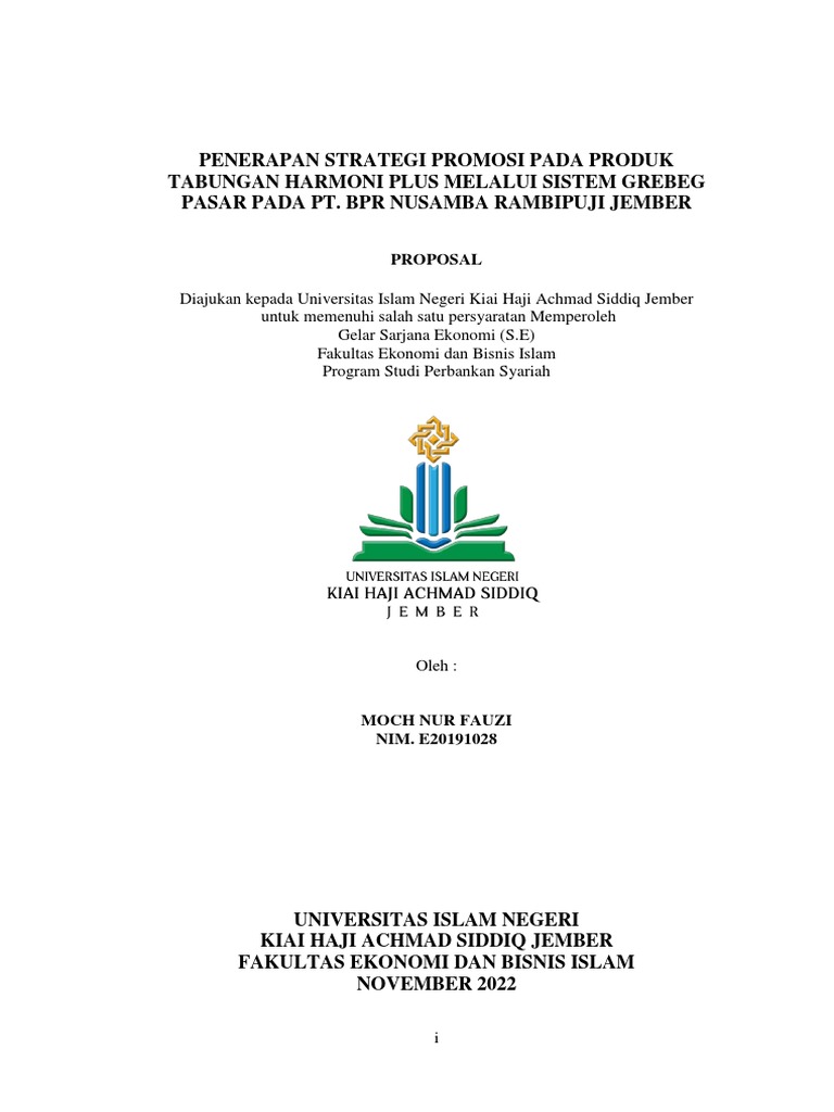 Diajukan kepada Universitas Islam Negeri Kiai Haji Achmad Siddiq Jember