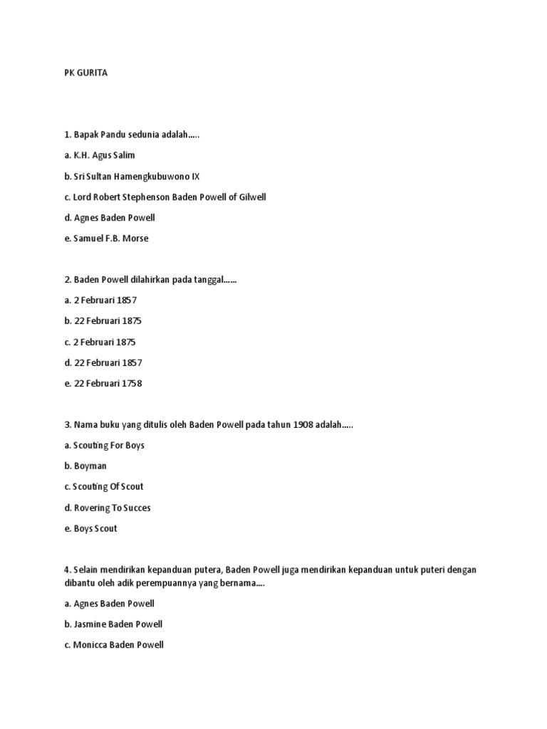 1. Bapak Pandu sedunia adalah…..