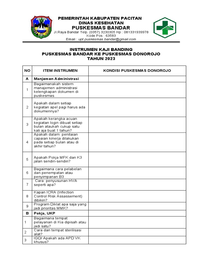 NO ITEM INSTRUMEN KONDISI PUSKESMAS DONOROJO