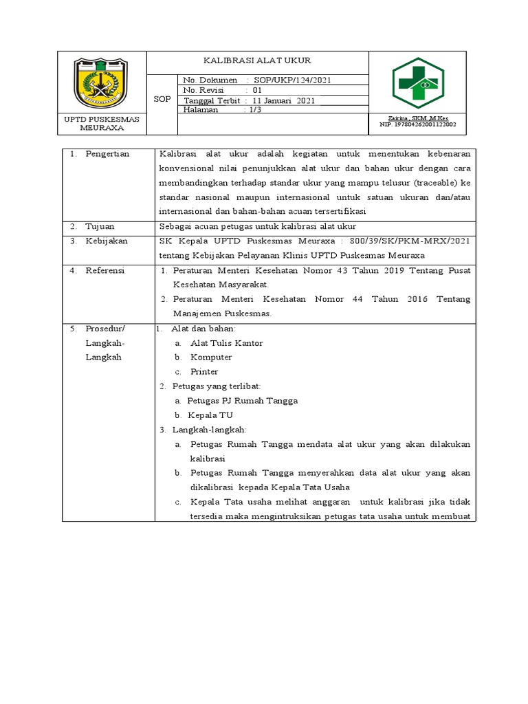 kalibrasi dan menyerahkan kepada Kepala Puskesmas