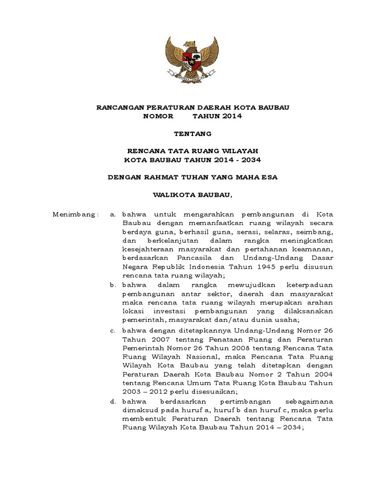 Baubau Nomor 2 Tahun 2004 tentang Rencana Umum Tata Ruang Kota
