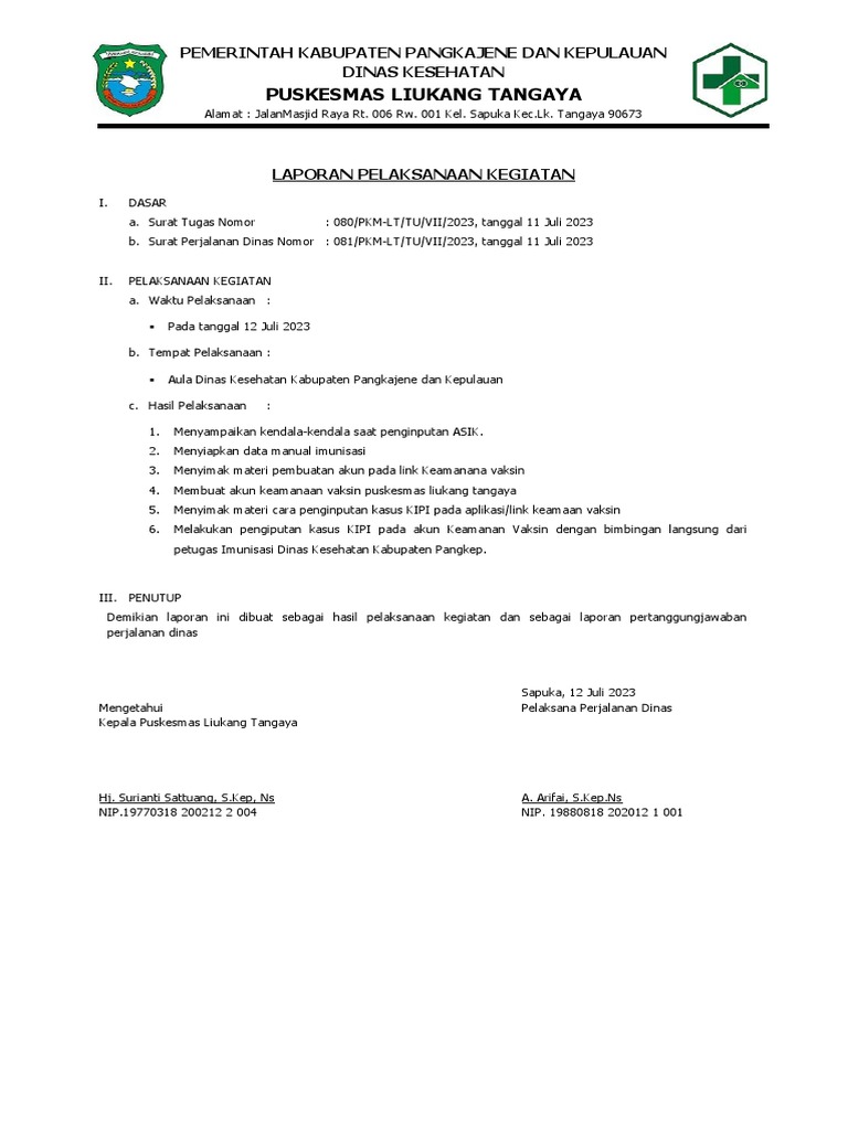 a. Surat Tugas Nomor : 080/PKM-LT/TU/VII/2023, tanggal 11 Juli 2023