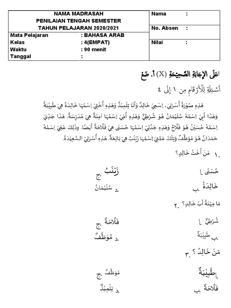 Mata Pelajaran : BAHASA ARAB
