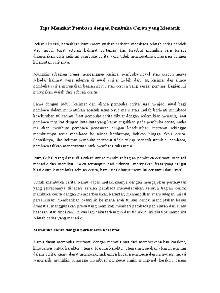 Banyak hal yang dapat dilakukan untuk membuat bagian pembuka ceritamu menjadi