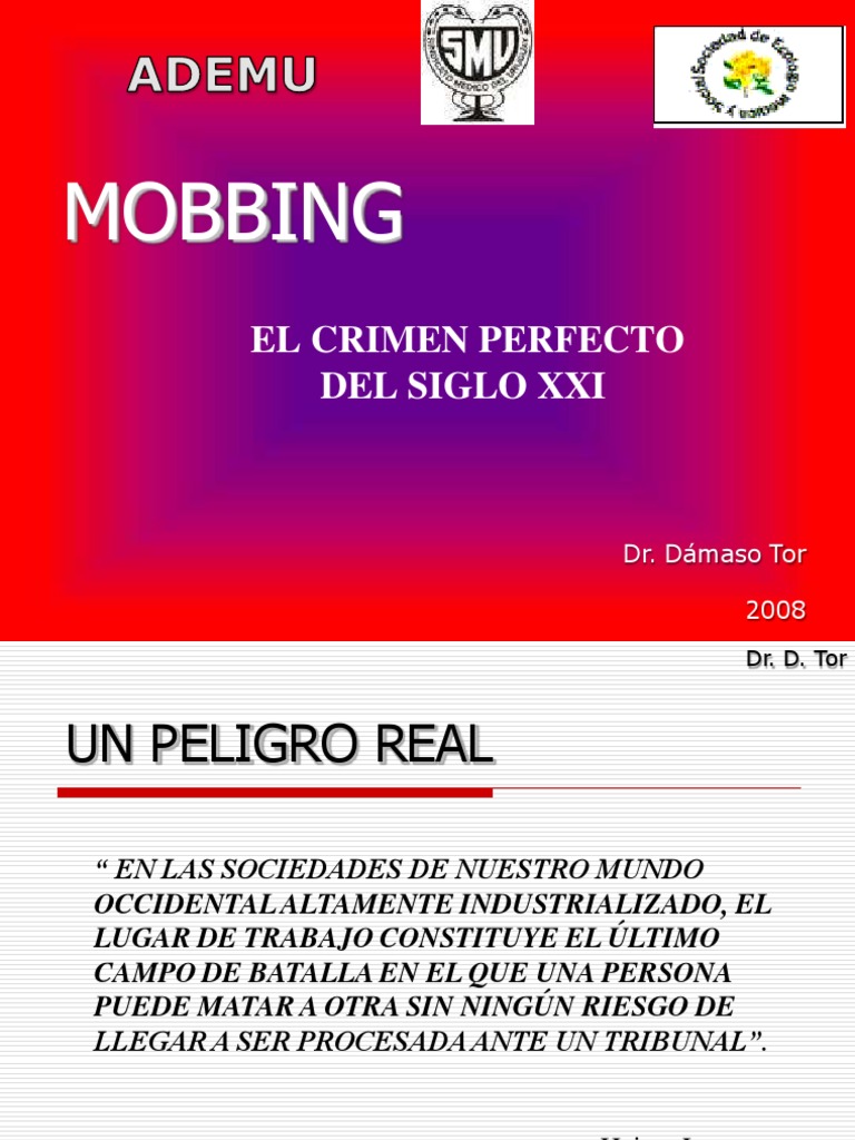 Desde entonces, el trmino se ha generalizado y hoy es un tema de moda, que preocupa, y que es urgente denunciar y divulgar, pues supone un abuso de poder, una tortura psicolgica y un maltrato de las personas en el puesto de trabajo.