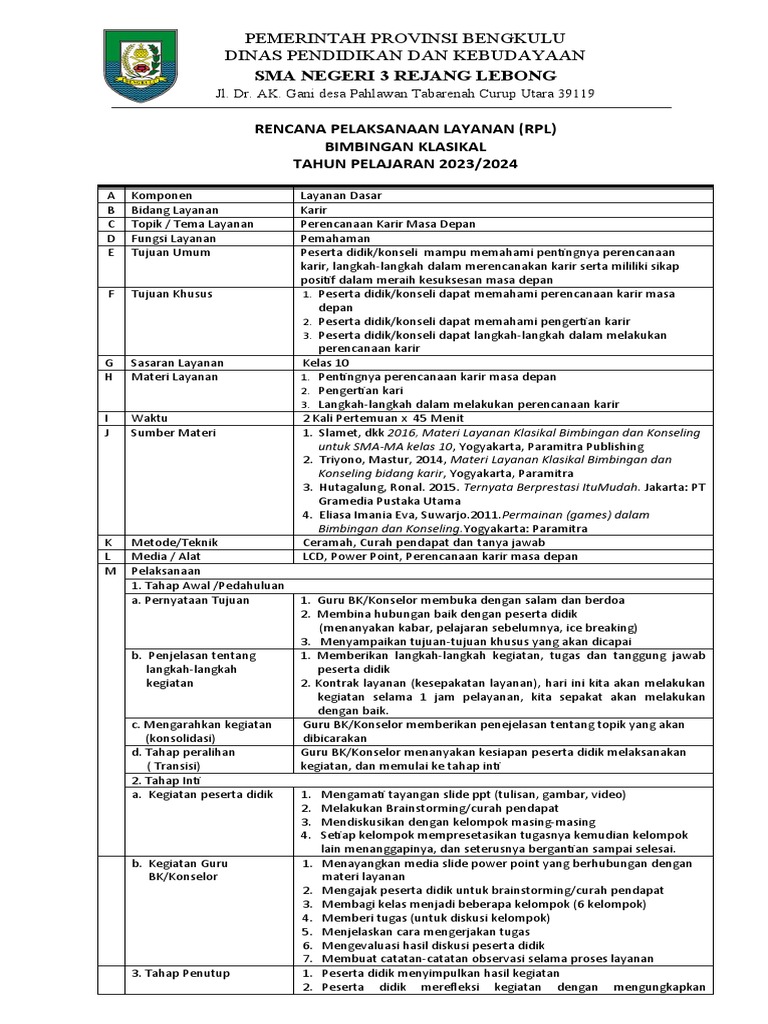 RENCANA PELAKSANAAN LAYANAN (RPL)