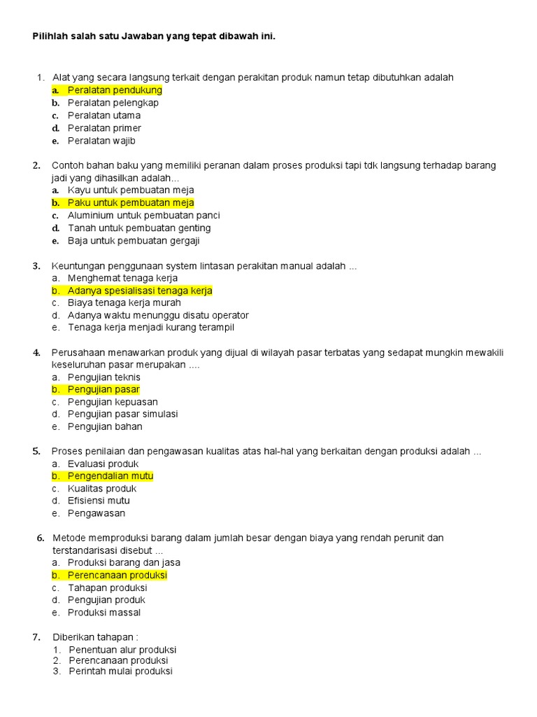 34. Proses perakitan pada produksi massal dilakukan dengan cara ...