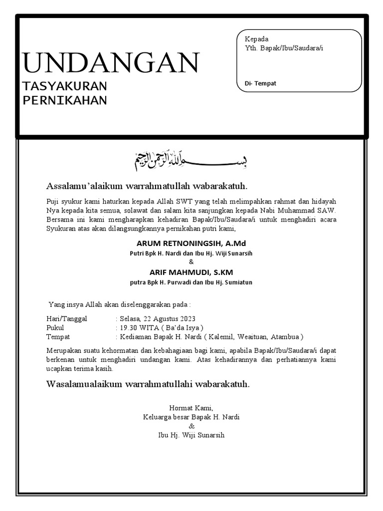 berkenan untuk menghadiri undangan kami. Atas kehadirannya dan perhatiannya kami