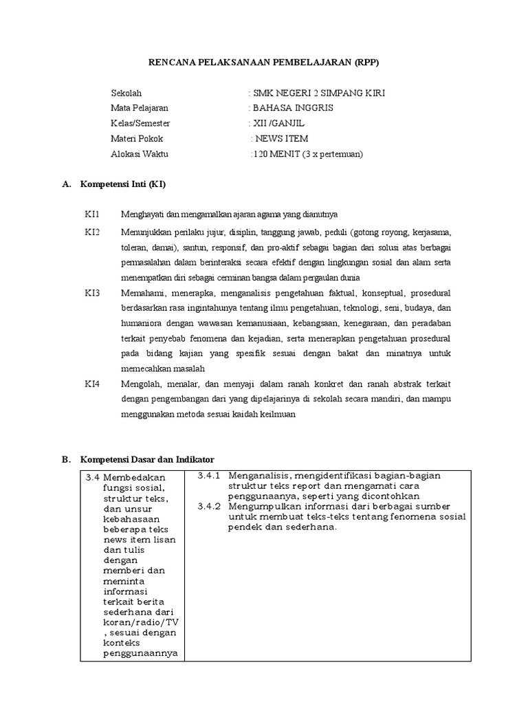RPP Bahasa Inggris: News Item Kelas XII