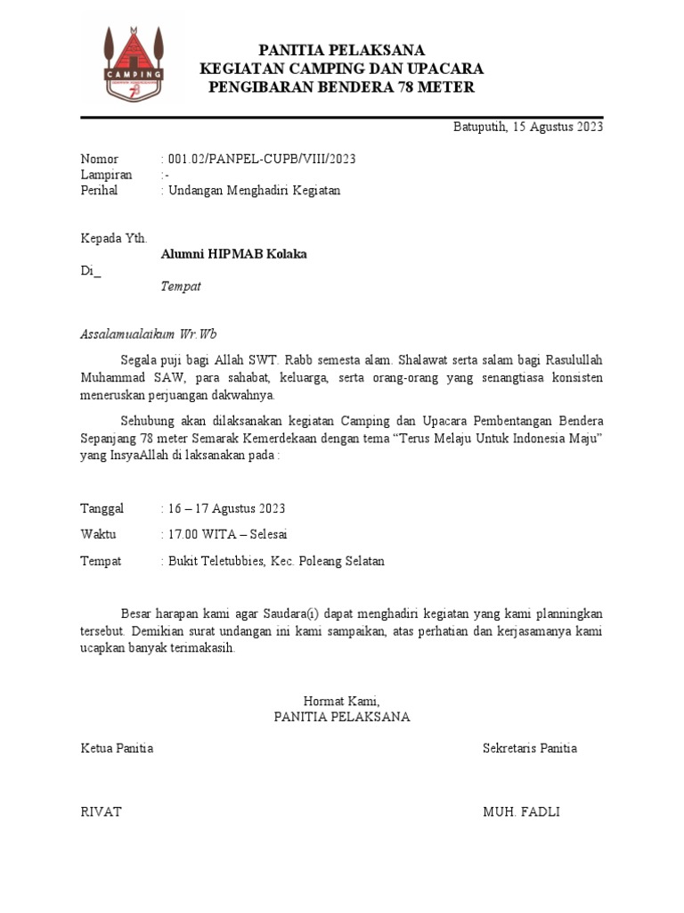 tersebut. Demikian surat undangan ini kami sampaikan, atas perhatian dan kerjasamanya kami