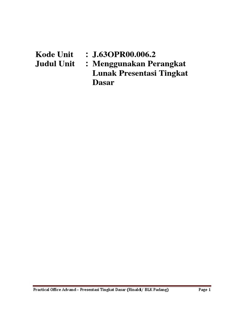 Practical Office Advand – Presentasi Tingkat Dasar (Rinaldi/ BLK Padang) Page 1