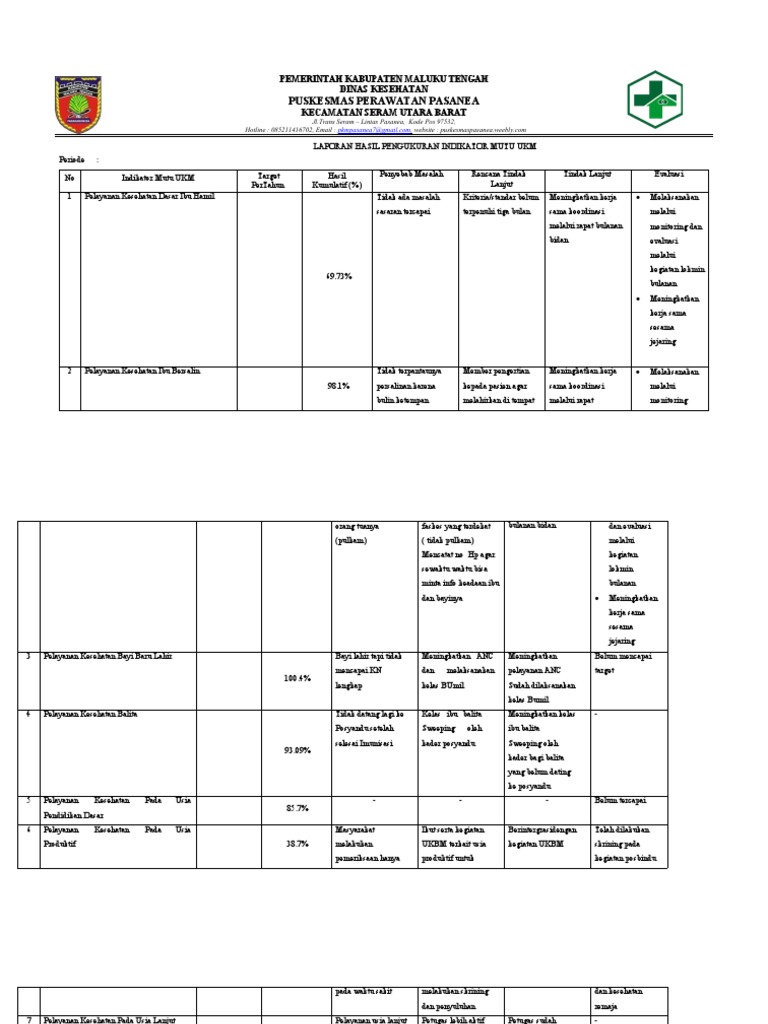 No Indikator Mutu UKM Target Hasil Penyebab Masalah Rencana Tindak Tindak Lanjut Evaluasi