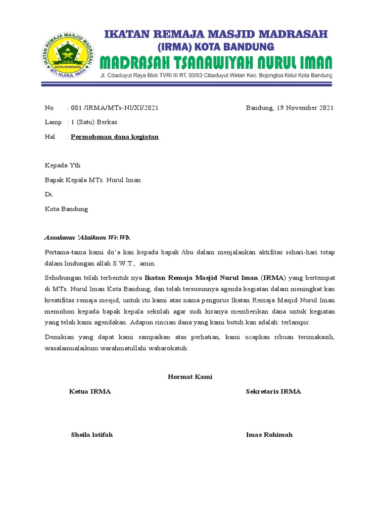 No : 001 /IRMA/MTs-NI/XI/2021 Bandung, 19 November 2021