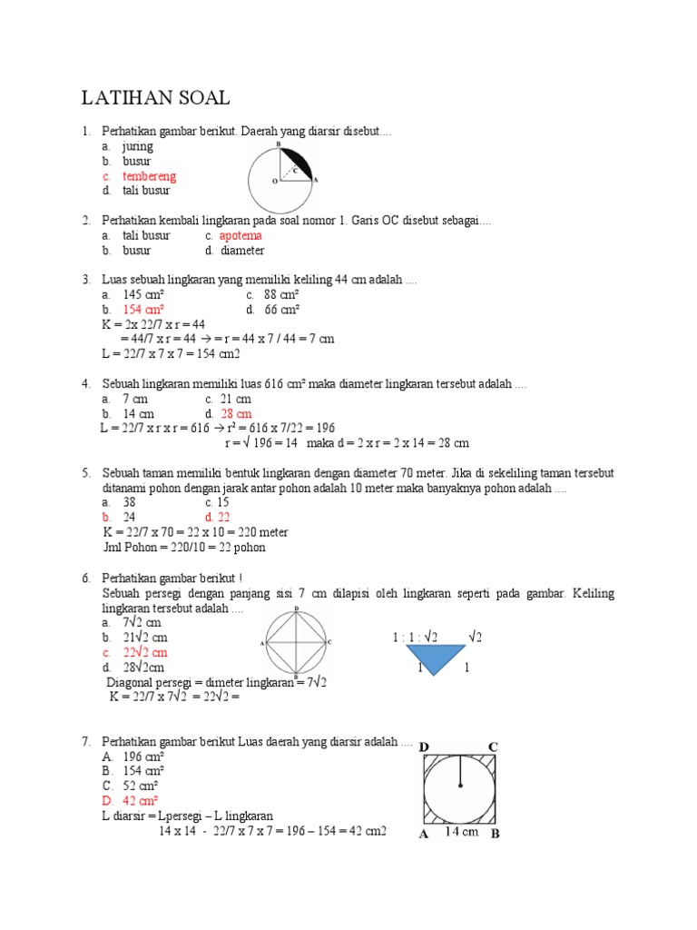 5. Sebuah taman memiliki bentuk lingkaran dengan diameter 70 meter. Jika di sekeliling taman tersebut