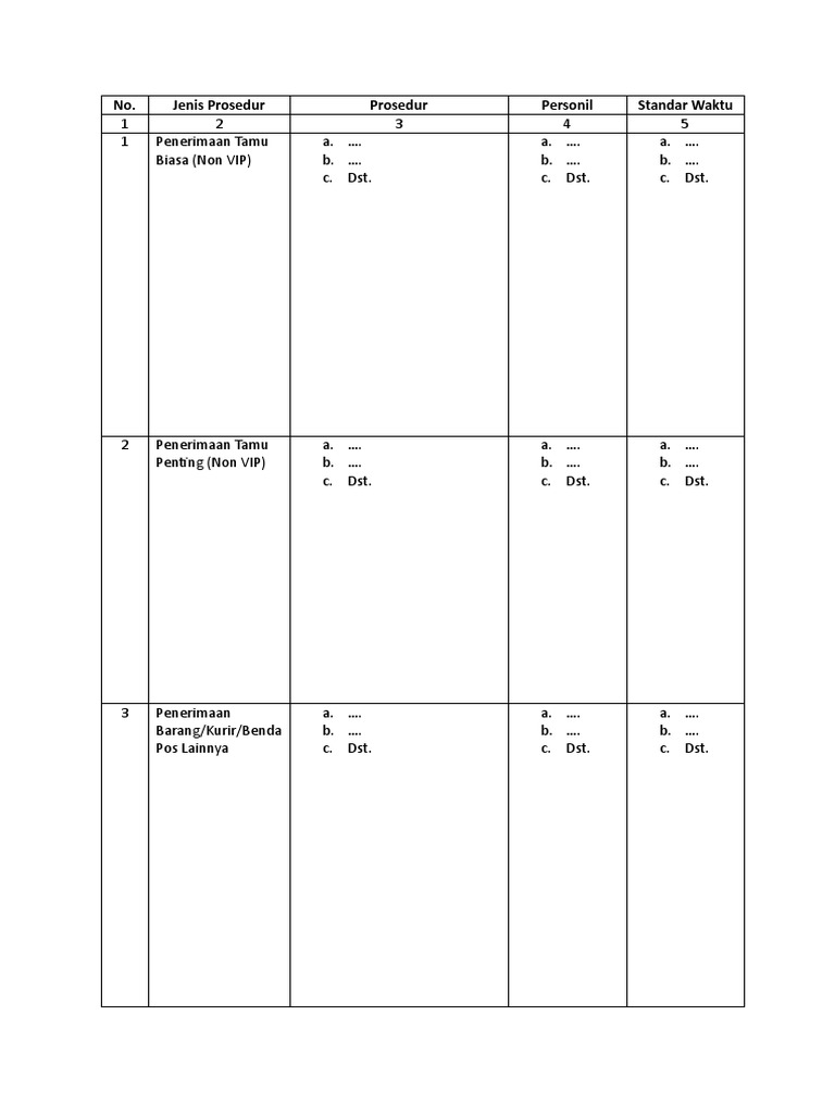 Kolom 3. Diisi dengan gambaran Langkah/prosedur mulai dari pertama tamu/kurir/pengirim