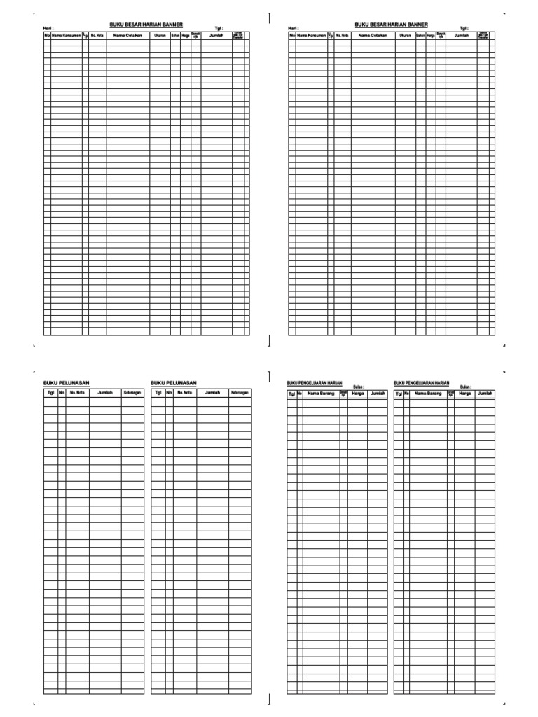Tgl No Nama Barang Banyak Harga Jumlah Tgl No Nama Barang Banyak Harga Jumlah Tgl No No. Nota Jumlah Keterangan Tgl No No. Nota Jumlah Keterangan
